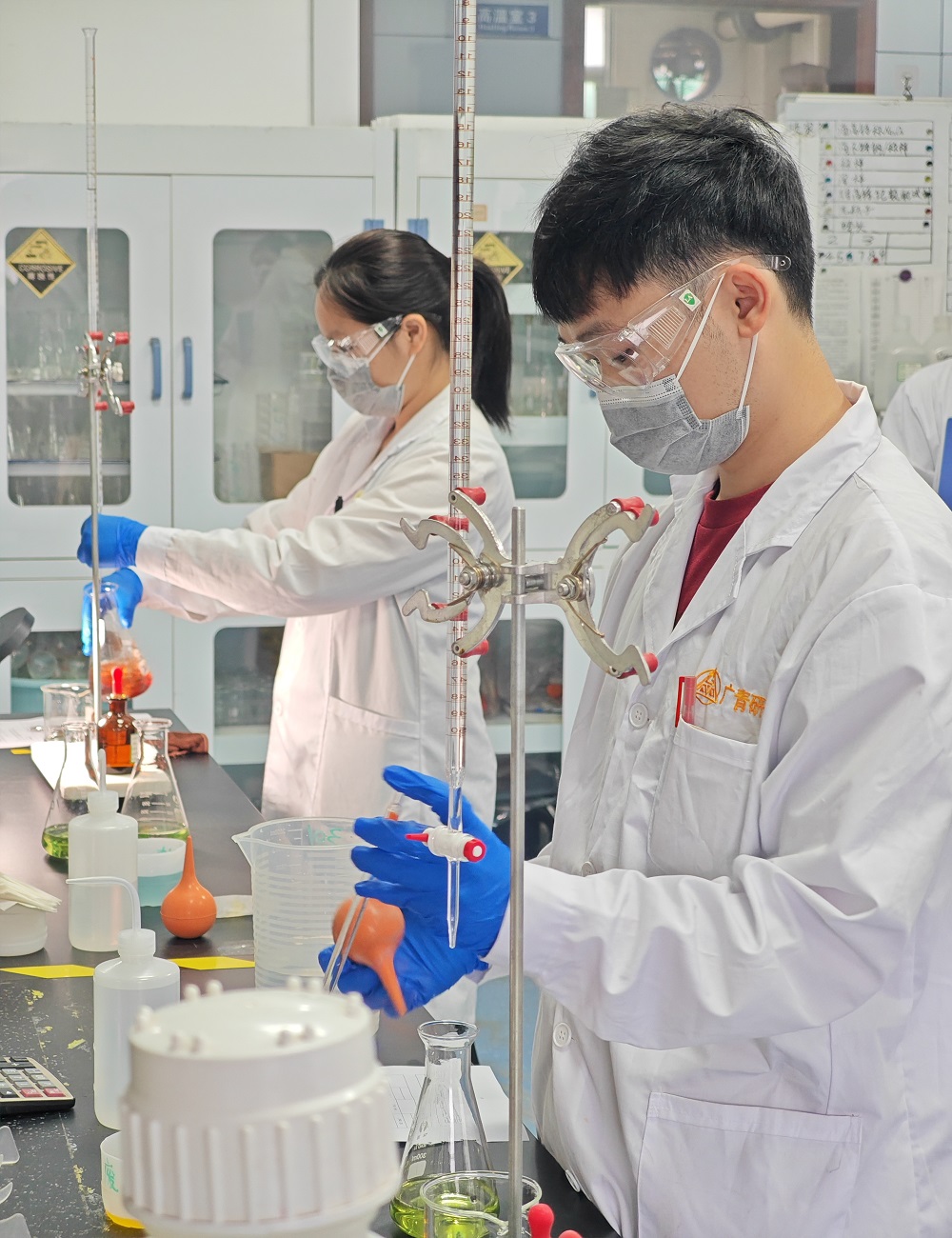 比赛分为理论考核与实操比拼两大环节。理论考核不仅考验了选手们对化学基础理论知识的掌握程度,还融入了最新的科研成果与行业动态,让理论与实践紧密结合。实操比拼考查天平称量、样品消解、移液操作、滴定操作及终点辨别等环节。对未知浓度的样品进行准确测定,误差需控制在毫克级别以内,这不仅是对技巧的挑战,更是对心理素质的考验。参赛选手神情专注,手法娴熟,大家通过比赛互相切磋,共同进步,真正达到以赛促学、以赛促训的目的,展现出良好的精神状态和竞技水平。