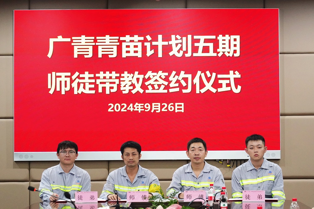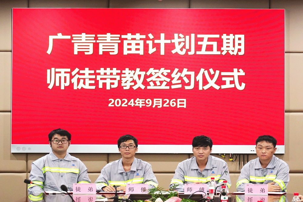 9月26日,广东广青金属科技有限公司“青苗计划”第五期启动暨师徒带教签约仪式在公司办公楼一楼会议室举行。公司党委副书记、工会主席王大庆,党委委员、副总经理杨洋,相关部门(厂)负责人及参与“青苗计划”五期师徒带教的学员和师傅约35人参加。