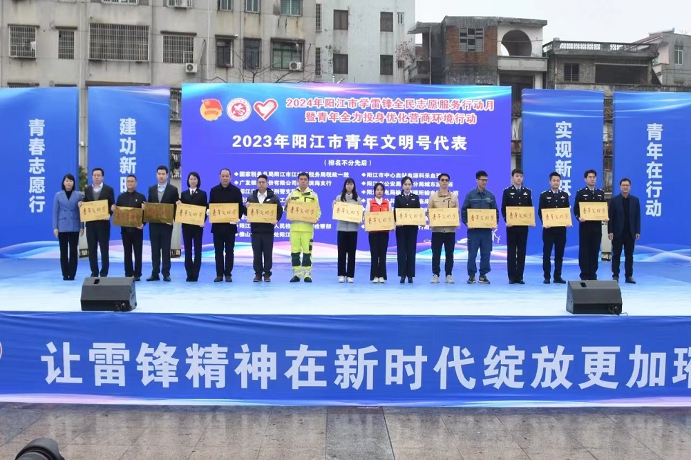 3月3日,在第61个“学雷锋纪念日”来临之际,2024年阳江市学雷锋全民志愿服务行动月暨青年全力投身优化营商环境行动启动仪式在市人民广场举行,活动对获得2023年阳江市青年文明号的先进集体进行表彰授牌。广东广青金属科技有限公司压延厂电气车间被授予阳江市“青年文明号”荣誉称号。