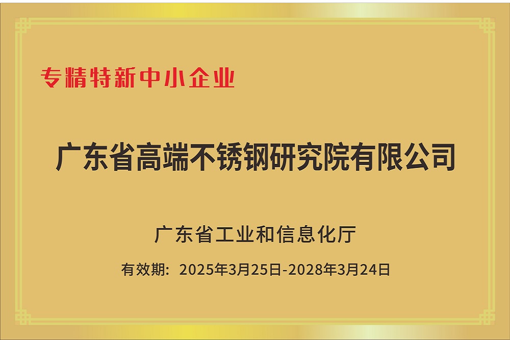专精特新企业由广东省工业和信息化厅组织认定,是指专注于细分市场,具备“专业化、精细化、特色化、新颖化”特征的中小型企业,致力于开发新产品、新技术、新服务,旨在通过技术创新和管理优化提升产业链竞争力,并在产业细分领域具有较高的专业水准和独特竞争优势。此次入选是对公司研究院长期坚持专业化创新发展、深耕高端不锈钢技术领域的有力认可。