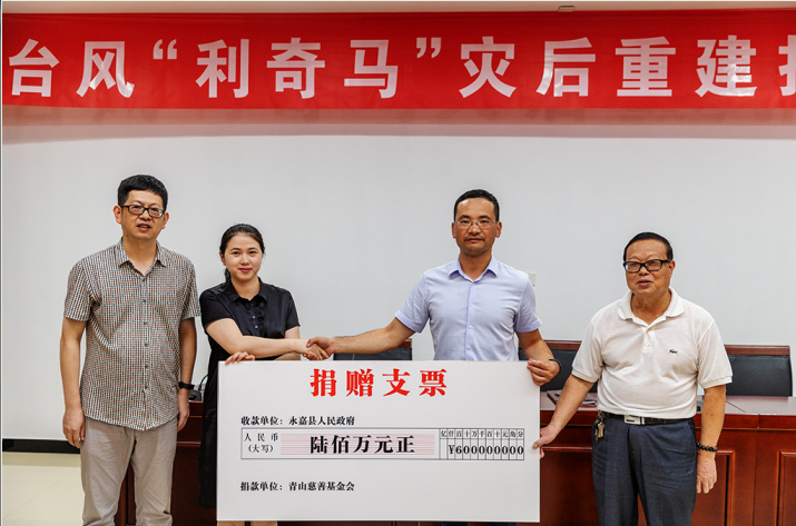 台风无情人有情。在外地出差的壹号娱乐-com实业董事局主席项光达从新闻上得知这一灾情后,第一时间给壹号娱乐-com慈善基金会负责人打电话,委托他们以全体壹号娱乐-com人的名义向灾区捐赠600万元,尽好企业的社会责任,并要求他们连夜派人将捐赠款送到永嘉县人民政府,用于灾后重建家园,以表达对灾区人民的关心和支持。