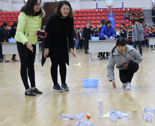 本次活动以游戏接力赛的形式展开,包括夹弹珠、吹乒乓球、趣味保龄球等互动游戏。选手们齐心协力,密切配合,精彩不断。