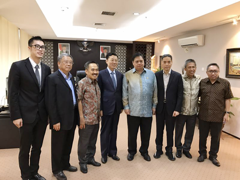 同日,在谢锋大使及印尼八星集团郑汉烈董事长等的陪同下,项光达主席前往印尼工业部拜访了印尼工业部长阿伊兰卡•哈尔达多。会上,项光达主席详细介绍了中国印尼经贸合作区壹号娱乐-com园区现有的投资强度、建设规模和生产情况,并对未来几年内的投资发展方略进行了深入介绍。各方就印尼壹号娱乐-com园区在建设、发展和经营中现有存在的若干困难和问题交换了意见并做出了解决的办法和安排。